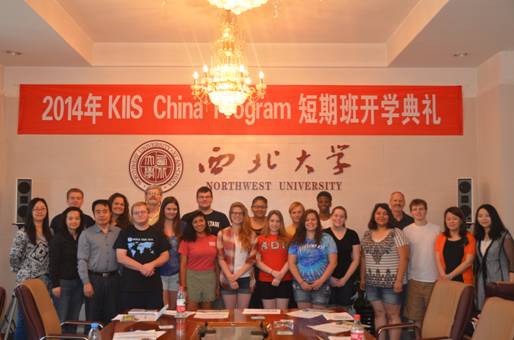 2014年5月24日,美国西肯塔基大学KIIS China Program短期班师生一行18人来我校进行汉语学习交流。5月26日上午8:00,美国西肯塔基大学KIIS China Program短期班开学典礼在国际合作事业大楼一层会议室举行。李振海院长、任惠莲副院长及学院相关人员参加了典礼。 李院长在开学典礼上代表学院致词,重点介绍西北大学及学科设置情况,希望本次短期交流能够让同学们亲身了解中国、了解西北大学,感受中国的历史文化。任惠莲副院长在学生观...