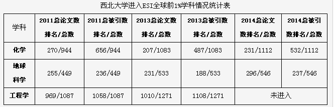 2014年3月底,根据基本科学指标(Essential Science Indicators,简称ESI)数据库检索显示,我校化学、地球科学两个学科进入了ESI全球前1%。其中,化学在进入ESI全球前1%的1112个机构中,总论文数排名第231位,论文总被引用数排名第532位;地球科学在进入ESI全球前1%的546个机构中,总论文数排名第296位,论文总被引用数排名第237位。我校学科自2008年首次进入ESI全球前1%以来,共有化学、地球科学以及工程学三个学科进入该体系。 ...