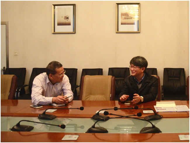 2016年10月11日下午,韩国大邱广域市教育厅朴在善奖学士、外国语高等学校朴惠卿老师到我院进行访问,我院院长任惠莲在一楼大会议室接待了该代表团一行。中韩教育中心沈浤老师、招生办公室主任和晶老师列席会议。 会上,院长任惠莲向韩方详细介绍了我院的基本情况,双方就大邱广域市高中生短期来华项目、预科桥梁课程以及大邱广域市韩籍教师短期汉语培训项目进行探讨,达成初步共识。