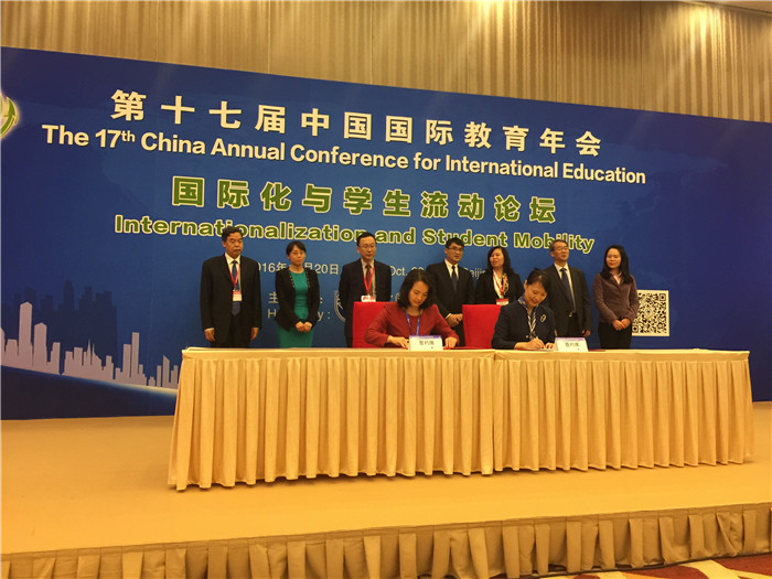 2016年10月20日至23日,第十七届中国国际教育年会在京召开。“中国国际教育年会”是在教育部等中央部委的大力支持下,由中国教育国际交流协会主办的每年一届的中外教育界年度盛会。大会期间,任惠莲院长代表学校与中国国际教育交流协会签署了来华留学教育认证协议,成为第二批接受来华留学质量监督和认证的高校之一。 本届年会以“创新与创业可持续发展人才成长之路:学校、企业和社会的合作伙伴关系”为主题,由“中...