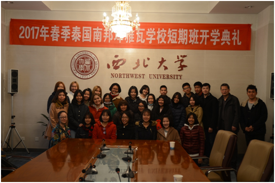 2017年3月11日泰国泰南邦埠雅丹学校短期班师生27人顺利抵达我校。3月13日上午9点在国际文化交流学院一层大会议室举行了开学典礼,本次开学典礼由招生办公室和晶老师主持,学院副院长张银仓、汉学系教师陈凯杰出席。 在典礼上,张银仓副院长代表学院致辞欢迎泰南邦埠雅丹学校师生的到来,希望大家在西北大学学习生活期间,做好学和看,不断提高汉语水平,亲身感受西北大学的文化底蕴和作为13朝古都西安的传统文化。和晶老师介绍了我...