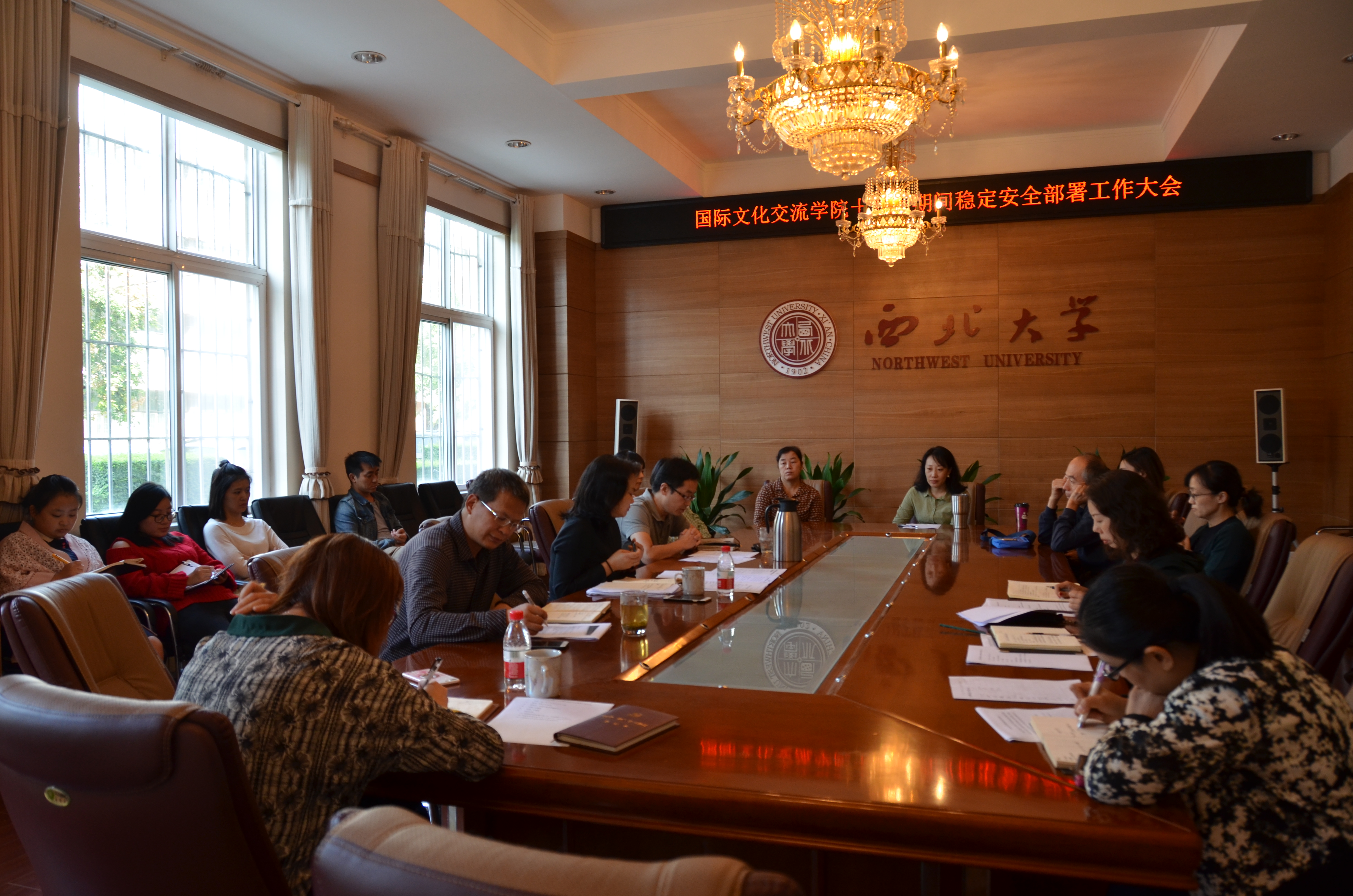 9月30日下午,在学院大会议室召开了由院班子及学院各部门负责人参加的稳定安全推进会。 任惠莲院长传达了李邦邦书记及校稳定办负责人针对学院相关情况的电话会议精神。各部门负责人分别在学生管理、消防安全、网络管理、值班安排、门禁管理及新生入学、宿舍管理、用电安全等方面查找问题、漏洞,摆问题台账,提出明确解决方案和方法。任惠莲院长并就落实相关方案提出了具体要求。