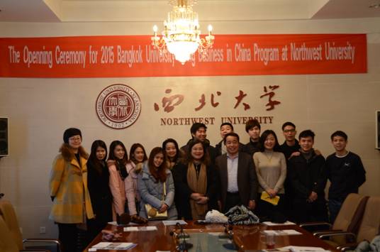 2015年12月14日,泰国曼谷大学开学典礼在我院举行。院领导、相关部门负责人及来自泰国的11位师生参加。任惠莲副院长主持了此次开学典礼。 李振海院长首先对曼谷大学的留学生们来到西北大学表示欢迎,并详细介绍了我校基本概况、专业设置及学院情况,希望大家认真学习汉语,亲身体验中国传统文化,把一个真实的中国带回去,成为两国友好交流的使者。泰国曼谷大学的领队老师Panadda十分感谢我校的热情接待,希望本届冬令营取得圆满成...
