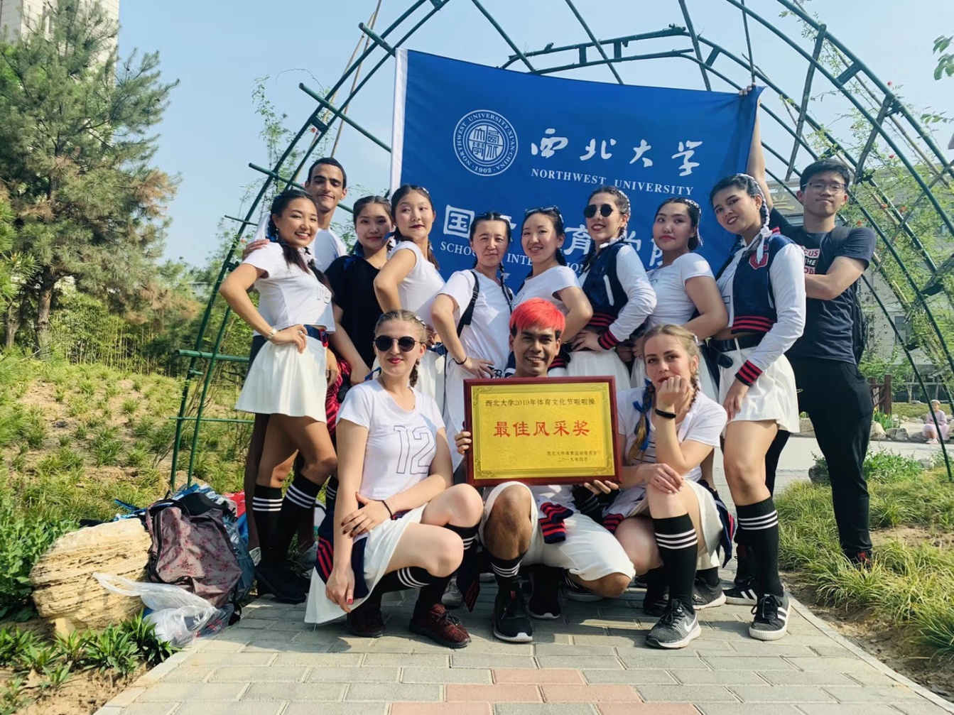 2019年西北大学体育文化节于4月17日-4月19日在长安校区举行,我院来自21个国家的71名留学生参加本届文化节。经过努力拼搏,老挝籍杨浩南获得男子标枪第三名,乌克兰籍塔吉亚娜获得女子400米第六名,我院获得运动会入场30秒展示优胜队伍和啦啦操“最佳风采”奖。 开幕式上,留学生身着各国民族服装、手执不同国家的国旗,与精神抖擞的教师方阵共同组成了运动场上一道多元文化,也最为靓丽的风景线。30秒展示与啦啦操表演环节,留学生...