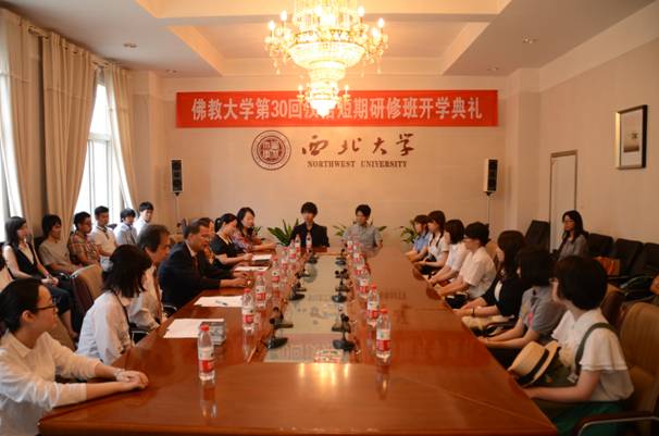 8月17日上午,日本佛教大学第30回汉语研修班顺利开班,学院举行了简单而隆重的开学典礼。相关院领导、任课教师以及佛教大学师生参加了典礼。 本次研修班由22名学生及黄当时老师、2名老师组成,将在我校进行为期10天的汉语研修学习。为了确保教学质量及效果,学院根据学生的汉语基础进行分班,精心设置课程,安排教学经验丰富的老师,采用以实践教学为主的模式授课。通过课堂授课、实践教学、参观西安名胜古迹,有效方式的提高汉语研...
