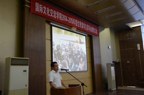 7月3日下午,学院在太白校区图书馆报告厅召开2014-2015年度优秀留学生奖学金颁奖大会,隆重表彰本年度优秀留学生奖学金生。院领导、全体教师及近200名留学生参加了颁奖大会。 在颁奖大会上,4名获奖留学生代表发言,从不同层面讲述了自己在我校学习生活的经验和体会,鼓励其他留学生努力学习汉语、中国文化和专业知识,并表示会珍惜获得的荣誉,再接再厉,不断努力,争取更好成绩。教师代表陶玉华老师发言中讲到,学习汉语一定要走...