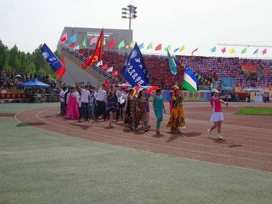 4月24日下午,历时三天的西北大学首届体育文化节在长安校区西体育场落下帷幕,校党政领导参加了闭幕式。 我院40多名留学生积极报名并参加了本届文化节。活动期间,我院留学生运动员们冒着炎炎烈日在赛场上奋力拼搏,尽情展示了西大留学生阳光、青春、活力的良好精神面貌。经过激烈的角逐,马山同学、努力卡同学分别在男子标枪和男子110米栏比赛中取得第四名、第五名的好成绩。