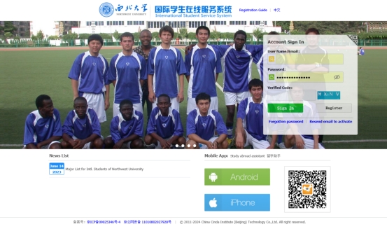 1、登录 https://nwu.17gz.org/ 网站登录个人账号。(初次使用需自行注册账号,点击"Register",注册登录完成后绑定学号即可看到个人信息界面)。
